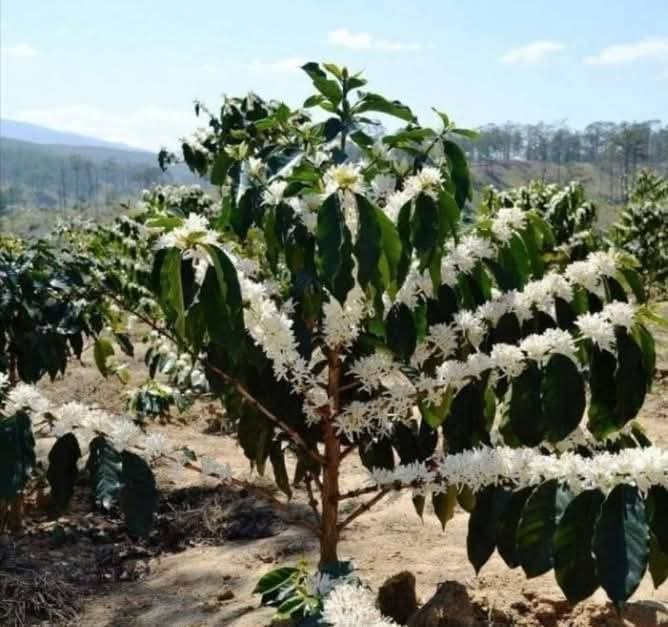 FRUNZELEArborele de cafea, tot timpul verde, are de obicei forma unui con, cu ramuri flexibile si radacini superficiale. Frunzele sunt verzi - lucioase si ating o lungime de maximum 20 cm, asemanatoare cu cele de laur, dispuse opus doua cate doua, de-a lungul ramurilor, in functie de altitudine si climat, arborele de cafea este in masura sa infloreasca (la fel ca si portocalul) tot timpul anului, infloritul principal se desfasoara pe o perioada de mai multe luni, desi florile sale se ofilesc deja dupa cateva ore. FLORILEFlorile sunt albe, cresc sub forma de ciorchine si emana un miros puternic, asemanator celui de iasomie sau de portocal, iar perioada de inflorire variaza de la o zona la alta . Ceea ce este caracteristic la arborele de cafea este faptul ca in toate sezoanele se gasesc in acelasi arbore ramuri cu flori, cu fructe verzi, in parg sau coapte, culoarea acestora trecand de la verde, la galben, apoi la rosu deschis si in sfarsit la rosu-purpuriu, cand fructele ajung la maturitate completa. FRUCTELECa aspect exterior, fructele de cafea se aseamana cu ciresele si